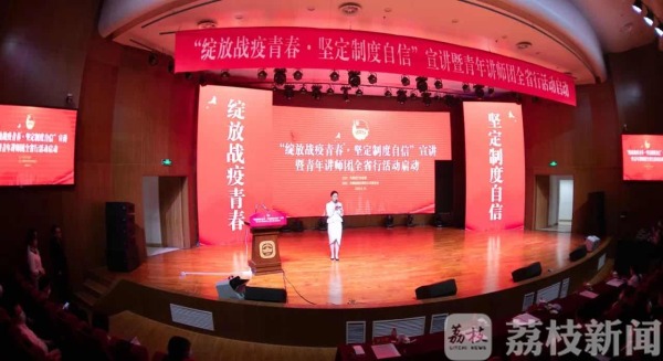 5月14日,旨在青少年中讲好抗疫故事、凝聚夺取“双胜利”青春力量的“绽放战疫青春·坚定制度自信”宣讲暨青年讲师团全省行活动启动,首场宣讲走进南京师范大学,各界青年同步观看网络直播452万人次,活动引发广泛热议和好评。