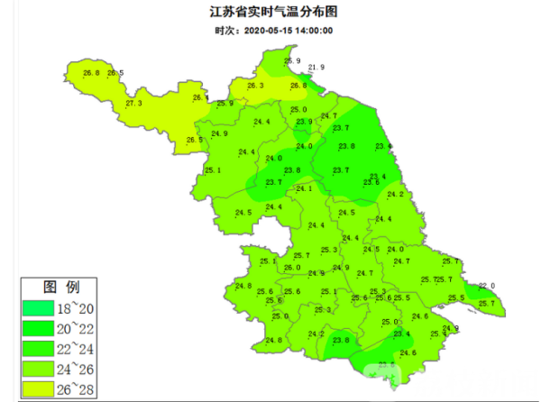 据江苏省气象台消息,昨天全省最高气温基本在25℃左右,比前一天有5℃左右的降幅。