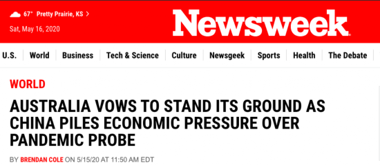 由于之前澳大利亚官方和媒体一直在炒作要成立一个针对中国的“国际新冠疫情调查团”,一些“做贼心虚”的澳大利亚媒体和一贯爱妖魔化中国的西方媒体,便趁机炒作说这是中国在“报复”澳大利亚。比如美国《新闻周刊》在上述报道开篇就宣称,中国被“澳大利亚呼吁就疫情调查中国”激怒,同时不忘渲染“莫里森对突如其来的贸易‘报复‘’保持乐观态度”。