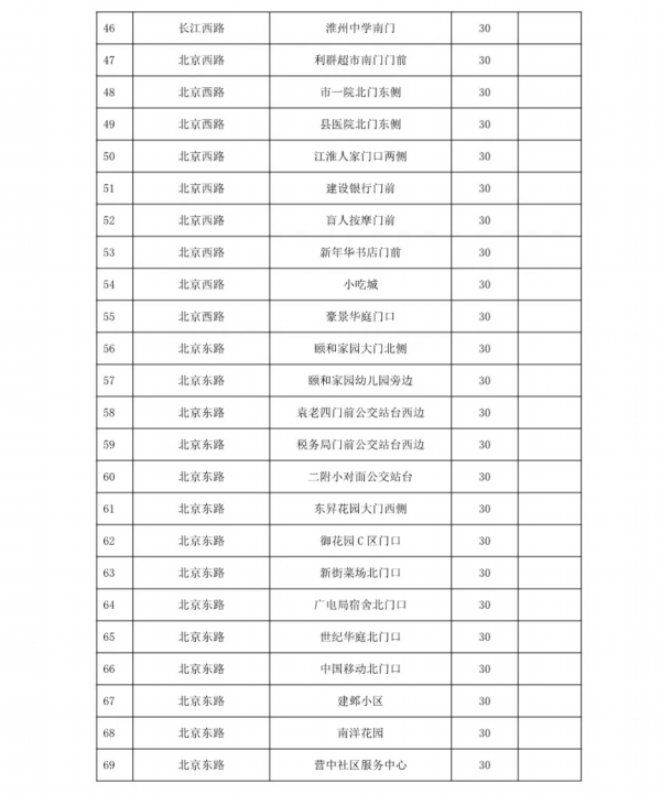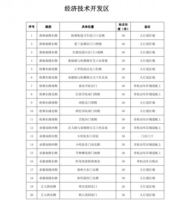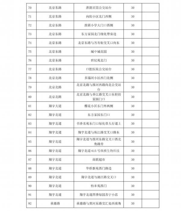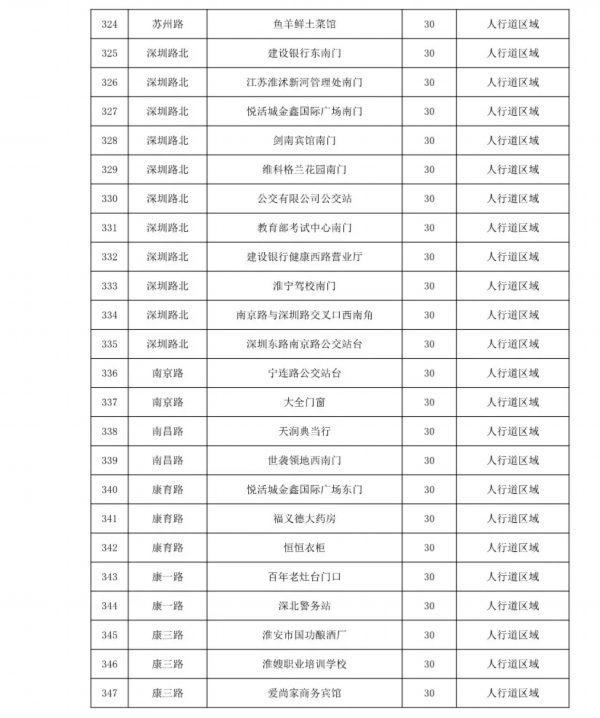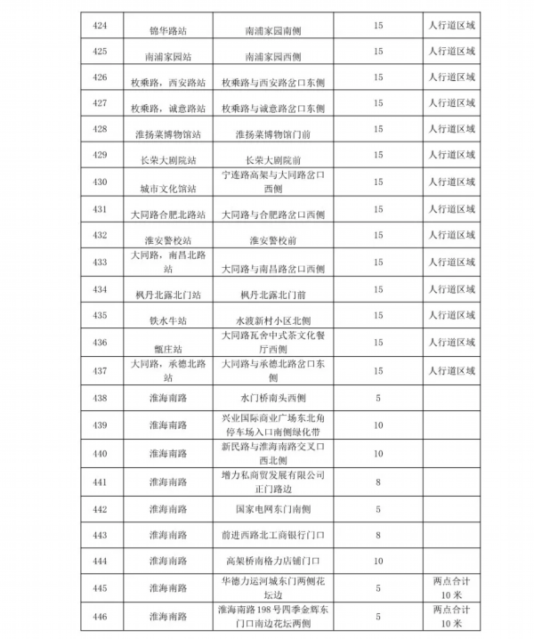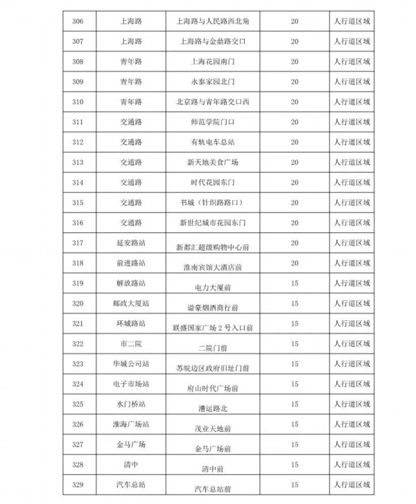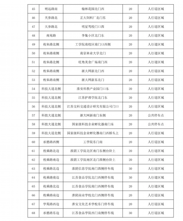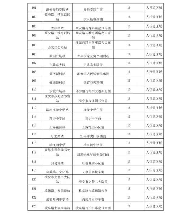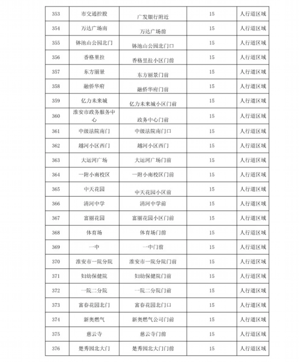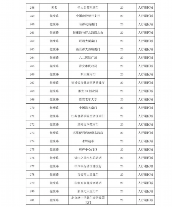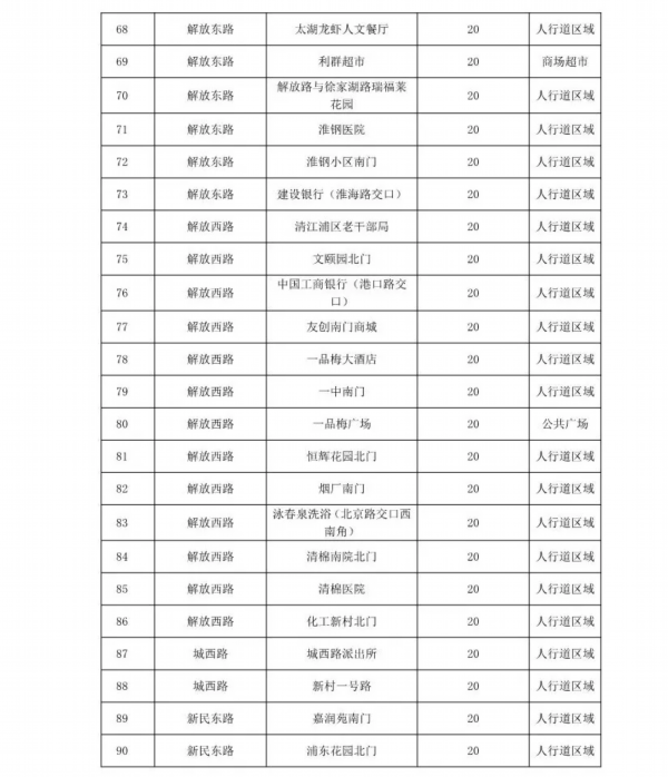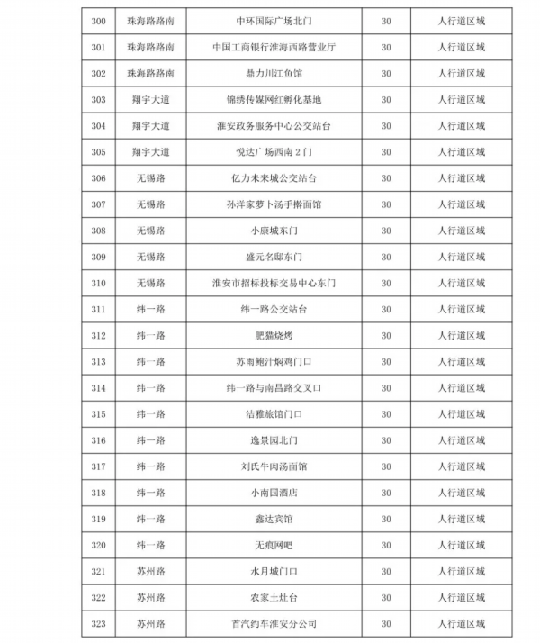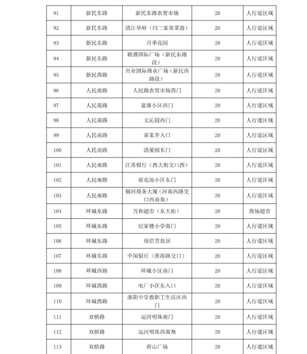 依据辖区共享单车停放需求和道路两侧停放场地现状,按照“疏密有致、合理布局”的原则,及覆盖公交站台和住宅小区周边、核心商圈在100—150米范围设置一处的统一要求,淮安首批排查确定了1355处共享单车智能定点停放区域(单车驿站),现予以公布。