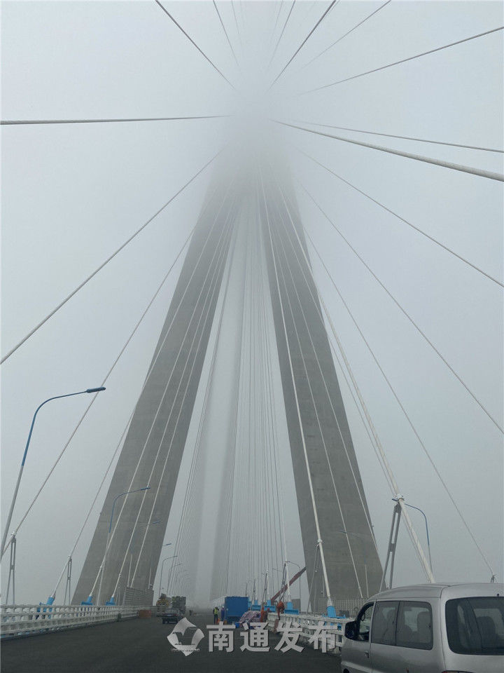 今天上午尽管大雾锁江,但公路桥面上的施工并未受到影响。阻尼器安装完成后,施工单位已经开始着实准备全桥亮化工程的施工,吊机等作业机械已全部就位。中铁大桥局沪通项目部一分部现场技术主管魏晓宁透露,亮化景观设计采用全LED灯具的照明方案,大桥的主塔、斜拉索、桥梁轮廓、桥墩、拱桥拱身、系杄等为承光载体,在夜空中凸显桥梁结构特征,将桥梁的轮廓、层次、立体形态展示在人们视野中,展现出大桥的简洁大气、庄重雅致。
