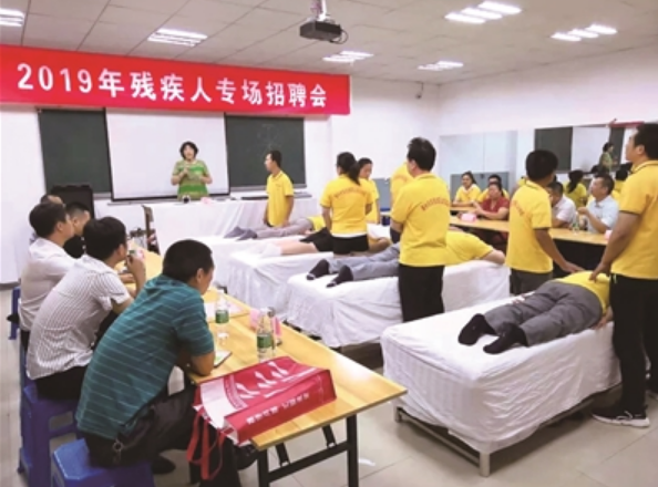泰州市残联系统通过举办就业援助专场招聘会、职业技能培训、按比例安排残疾人就业年审、辅助性就业等多种形式,全力帮助有就业意愿且有就业能力的残疾人实现就业。2019年举办盲人保健按摩、电商、插花、手工、计算机、农村实用技术等培训班50期,培训残疾人1083人次。全市创建5个市级残疾人职业培训基地,3个残疾人就业见习基地。全市有8家盲人医疗按摩机构纳入基本医疗定点协议管理,实名制就业残疾人898人,实名制培训残疾人692人,安置辅助性就业1417人。