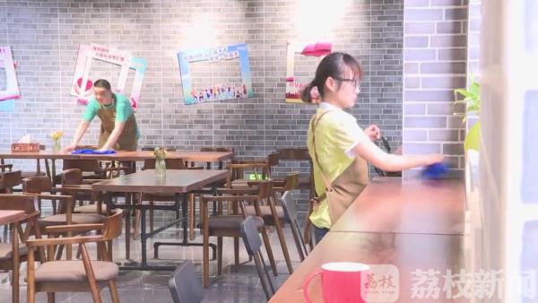 5月16日上午,经过前期培训的三位自闭症患儿,在位于镇江西津渡景区内的残疾人就业创业孵化基地一楼大客咖啡正式上岗。