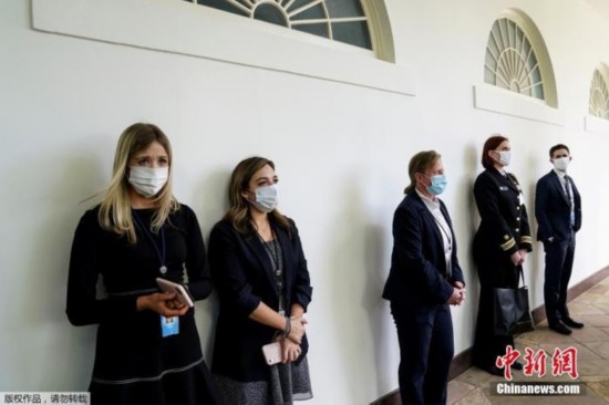 当地时间5月11日,美国白宫举行了关于新冠肺炎的新闻发布会,白宫新闻秘书和其他白宫工作人员、记者以及美国军方成员均佩戴口罩出现在白宫玫瑰花园参加发布会。