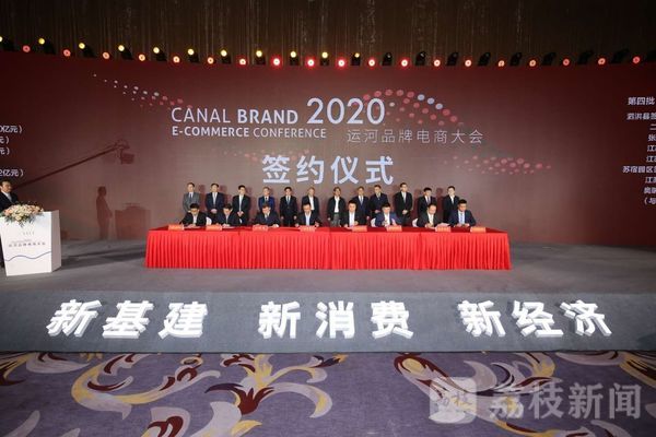 5月18日,第二届运河品牌电商大会于宿迁成功举办。本届大会由中共宿迁市委、宿迁市人民政府、中国国际电子商务中心主办,京东集团协办。大会以“新基建 新消费 新经济”为主题,旨在深化电商产业合作,诚邀各界共同助力宿迁电商名城建设。阿里巴巴、华为、慧聪等知名电商企业代表,台湾制造业企业代表和京东集团供应商企业代表参加会议。本次大会共签约37个项目,协议投资总额569.7亿。商务部中国国国际电子商务中中心于会议期间发布《2020“一带一路”电子商务发展报告》。