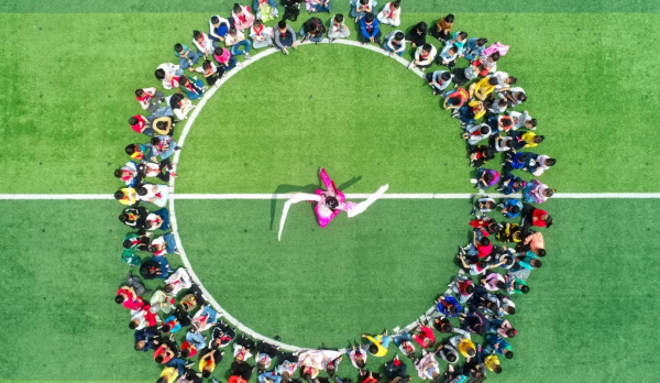 ◎文化志愿者指导学生们练习戏曲艺术基本功