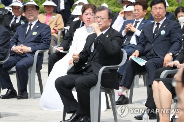【海外网5月18日编译报道】据韩国《亚洲经济》报道,5月18日,韩国总统文在寅在全罗南道出席一场活动时,媒体拍到他神情疲惫,嘴唇干裂且有脱皮。