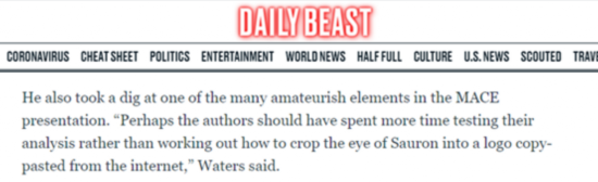 一位对MACE的报告嗤之以鼻的调查记者则讽刺说,做出这份报告的人应该多花点时间检验一下他们的报告,而不是光想着美化他们项目手册上的LOGO图标……