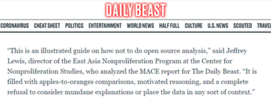 《每日野兽》还与新闻调查网站Bellingcat通过调查发现,MACE报告中所宣称的武汉病毒所11月的一次学术活动因为疑似发生的生化事故而取消的说法也是虚假的,因为他们在社交网站脸谱网上发现了,当时参加了活动的巴基斯坦科研人员所发布的现场照片以及自己的自拍照。