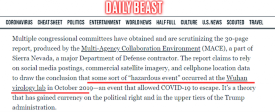 根据《每日野兽》的报道,MACE这份报告认为病毒来自武汉病毒所的核心依据,是发现去年10月中旬,武汉病毒所外面的公路被设置了大量“路障”,该地区一条高速路上发出的手机定位数据也在此期间减少,甚至武汉病毒所原本在去年11月计划召开的一个会议也被取消了。