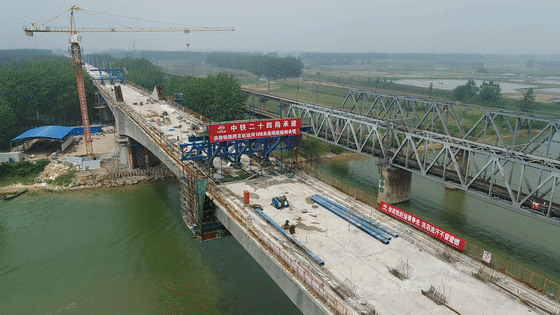 全长337.3米的连徐高铁跨度最大的跨京杭大运河连续梁顺利合龙,这标志着铺轨通道顺利完成,为连续梁无砟轨道施工“最后一公里”奠定了基础。