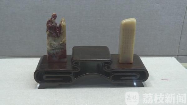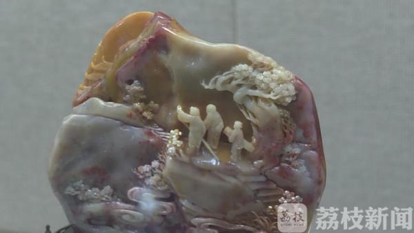 在展览现场,记者看到,本次展览共展出寿山石作品近百件,品种涵盖田黄石、芙蓉石、旗降石等,题材包括人物、山水、奇花异卉、飞禽走兽及印章,其中不乏大师级工艺美术师的精品之作。