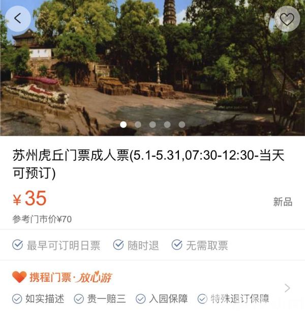 需要提醒的是,日前文旅部联合卫健委印发通知,景区接待游客量不得超过核定最大承载量的30%,因此,预约购票成为游客需要面对的首要问题。目前,多数门票已实现“分时预约”功能,全面和景区对接,游客可以在平台上购票后提前选择好所需时间段,届时顺利入园。以此次参与优惠活动的苏州虎丘景区为例,优惠的成人门票限定在7:30至12:30入场,因此,游客在购票后需要合理安排游览时间,以免错过时间。
