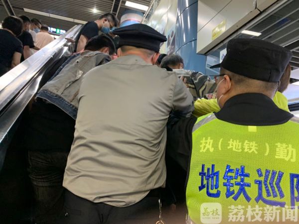 无独有偶,5月16日下午2点多,在南京地铁一号线南京站,两名老人在电扶梯上摔倒了。南京市公安局地铁分局南京站派出所民警葛毅介绍:“一名女性乘客由于年纪比较大,行动不是很方便,上手扶梯脚没有踩稳就往后摔倒,连带着摔倒了一个老大爷,两个人摔在了一起。”