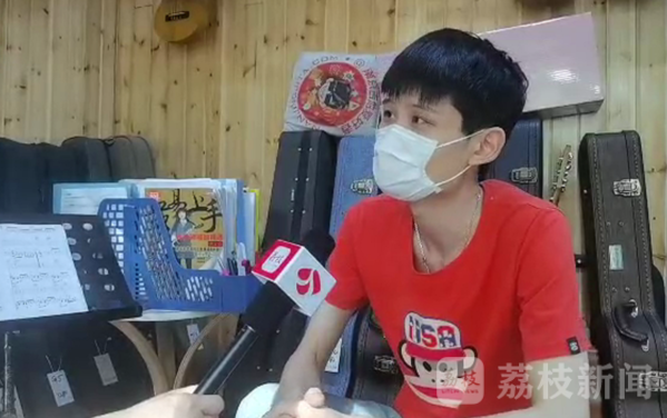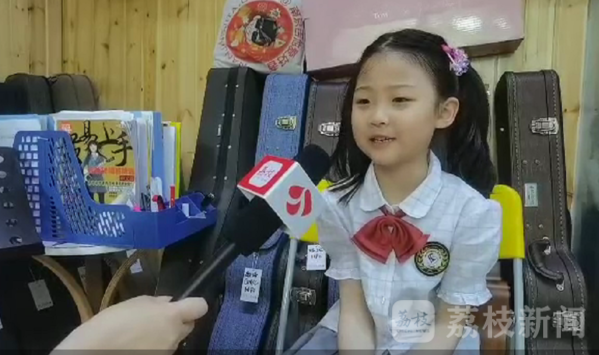 5月19日下午,荔枝新闻在miumiu爸爸周经纬开的琴行见到了放学回家的miumiu。她穿着校服,扎着两个小辫儿,稚气未脱。