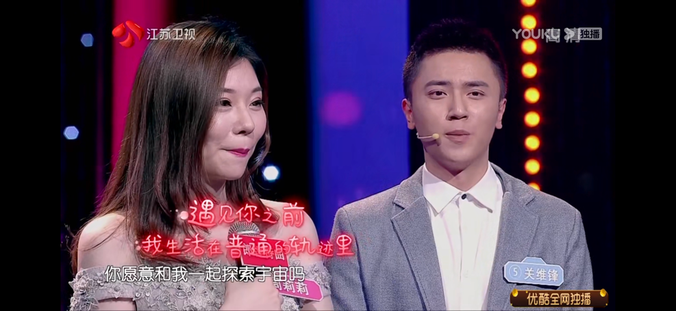 还是慢热的男嘉宾关维锋被灭灯时,鼓足勇气勇敢求爱女嘉宾周莉莉:“你愿意和我一起探索宇宙吗?”