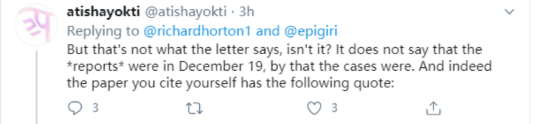 而一直在通过中国学者提交的论文跟踪中国新冠疫情进展的《柳叶刀》主编理查德·霍顿,也对这一时间线很清楚。所以,就在特朗普发布了拿《柳叶刀》说事的虚假信息后,霍顿立刻于今天下午在他的个人社交账号上发帖,毫不留情地揭露了特朗普的造假行为。