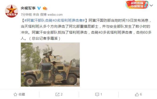 阿富汗国防部当地时间19日发布消息,当天塔利班从多个方向袭击了阿北部重镇昆都士,并与安全部队发生了数小时的冲突。阿富汗安全部队抵挡了塔利班袭击,击毙40多名塔利班袭击者,击伤60多人。(总台记者李霜溪)