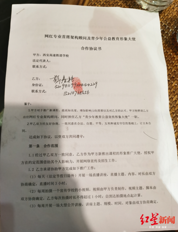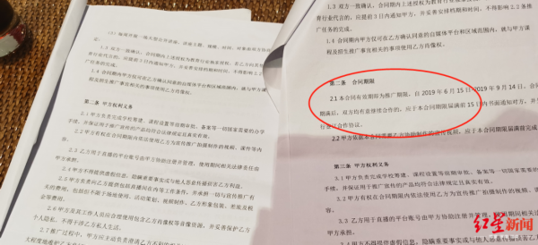 红星新闻记者对比修改前后的两份合同发现,修改后的合同新增了合同期限条目,称本合同有效期为“推广期限”,为2019年6月至9月,但未提及费用。关于学校向薛春艳支付“宣传费一百万,分12次以每月形式付清,自合同签订之日,按12个月平均支付给乙方”这一条,前后合同一致。
