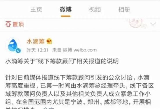 水滴筹官方微博回应称: