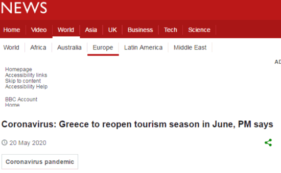 BBC注意到,在希腊宣布这一消息之际,欧盟各国旅游部长们同意“尽一切可能迅速、全面恢复欧洲旅游业”。