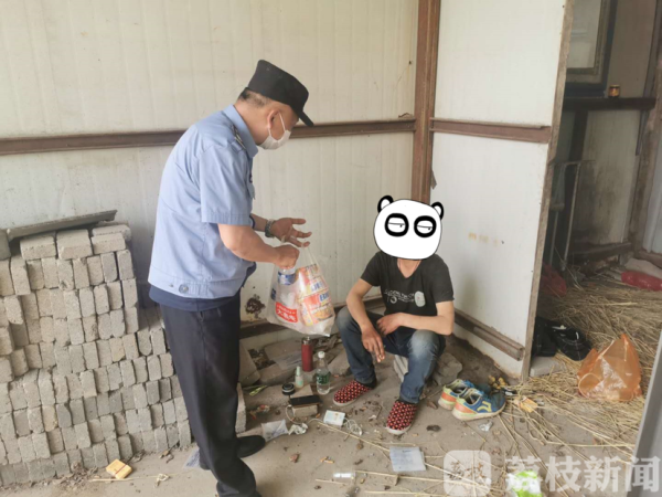 5月19日上午走访工作中,民警在天宁区郑陆镇粮庄桥村委附近的废弃工棚中,发现了一个胡子拉碴的成年男子。经询问,该男子称自己是安徽人,来到常州之后一直没有找到正经工作,现在身无分文、肚子很饿,民警立即拿来矿泉水和泡面给他充饥,并将其照片发到工作群中,关照其他民警、辅警留意。