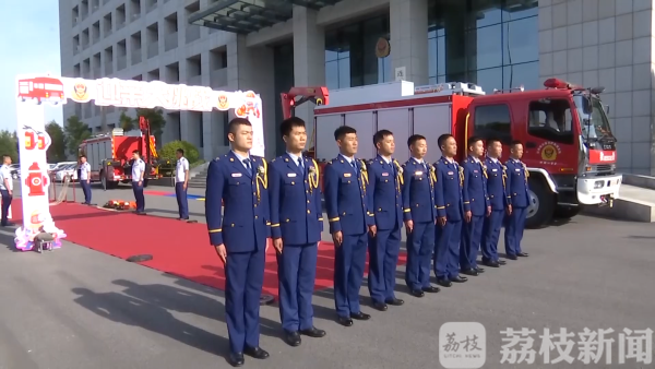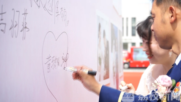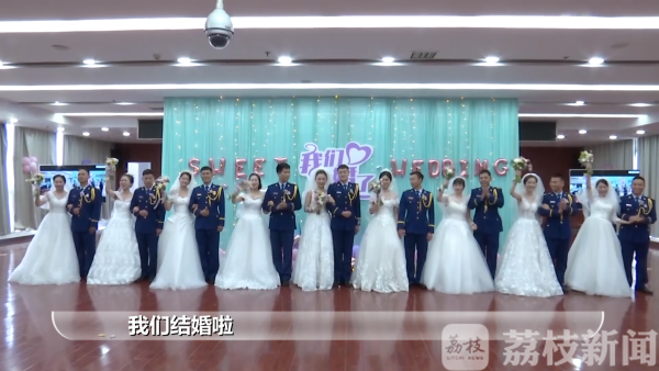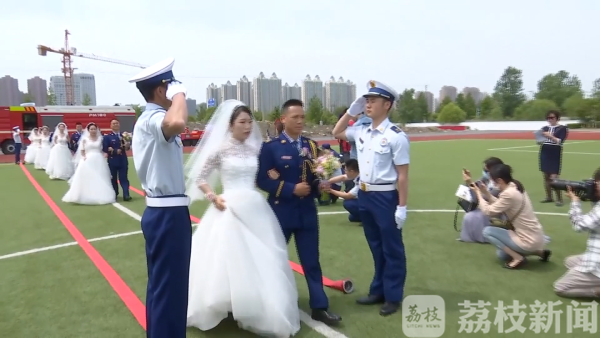 荔枝新闻讯 5月20日是一个见证爱情的日子,连云港市消防救援支队也为队里的9位消防指战员们举办了一场集体婚礼。早晨七点多,9名新郎身穿"火焰蓝"礼服,在中国消防救援队旗下,重温入队誓词。在通过充满消防元素的"迎亲考验"之后,新郎与新娘幸福牵手。