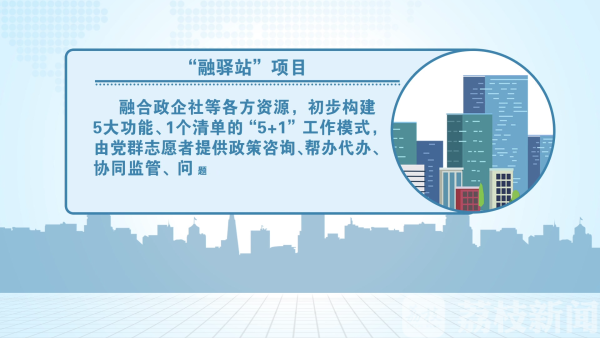 “就近办、一次办、马上办、自助办”,作为园区一站式服务中心的服务外延,“融驿站”项目融合政企社等各方资源,初步构建5大功能、1个清单的“5+1”工作模式,由党群志愿者提供政策咨询、帮办代办、协同监管、问题沟通、信息反馈等N项业务功能;同时,聚焦各产业集群特点,定制诸如项目建设、人才服务、金融税务等不同类别的专属服务。“融驿站”内还将配置园区“一网通办”二期品牌“融易办”自助终端,切实打通服务企业的“最后一米”。