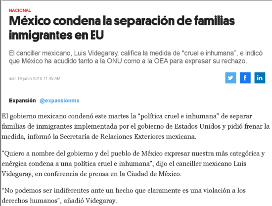 △2018年6月18日新闻截图 新闻标题:墨西哥谴责美国强行分离移民家庭
