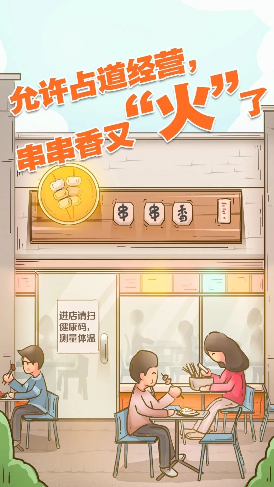 突如其来的疫情给餐饮业带来不小的打击。得知网友的困难后,成都坚持柔性执法和审慎包容监管,在不侵害他人利益等前提下,允许临时占道经营、促销,越门经营,让城市更有烟火气。