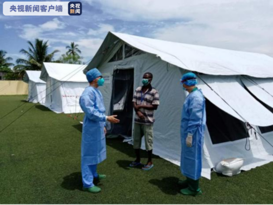 当地时间5月21日,非洲岛国圣多美和普林西比的首家方舱医院迎来了从定点医院转运来的19名新冠肺炎轻症患者。这家在足球场上搭建的“帐篷式”方舱医院由中国援圣普医疗队参与设计,在世卫组织支持下经过一个月多方的努力建设而成,于5月20日正式开舱接受了第一名新冠肺炎轻症患者。目前共有50张床位,可根据需求扩容至100张床位。