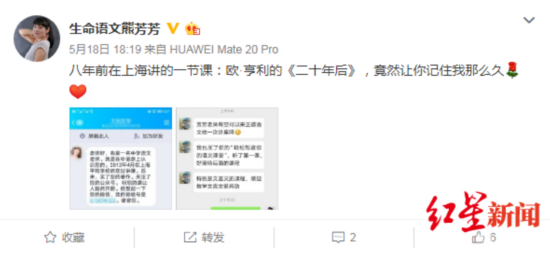 熊芳芳在微博中经常发表一些对教学和生活的感悟