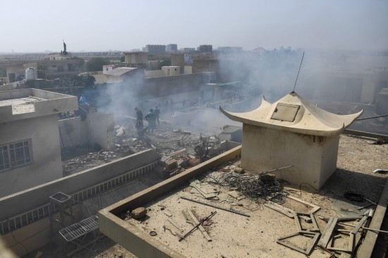 5月22日在巴基斯坦卡拉奇拍摄的坠机地点。 新华社 图新华社5月23日消息,巴基斯坦信德省卫生部门23日确认,巴基斯坦国际航空公司客机坠毁致使97人遇难。