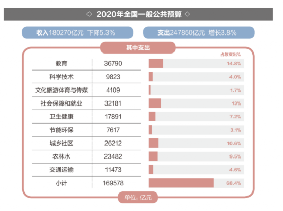 2020年是全面建成小康社会和“十三五”规划收官之年,也是脱贫攻坚决战决胜之年。突如其来的新冠肺炎疫情给我国经济社会发展带来冲击。国家的钱要怎么花?积极的财政政策如何更加积极有为?让我们一起从2020“国家账本”中找答案。