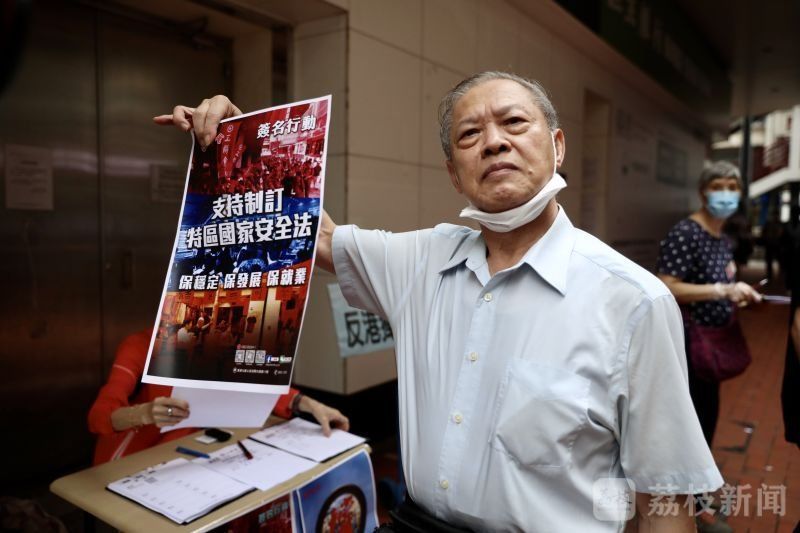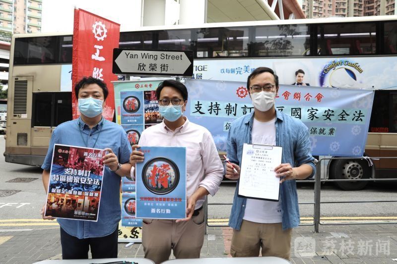 5月22日,香港工联会在油塘发起“支持制订特区国家安全法”保稳定、保发展、保就业的签名行动。大批香港市民踊跃签名。
