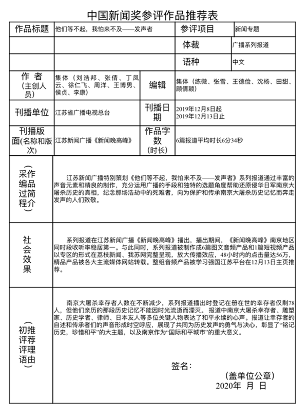江苏新闻广播国家公祭特别策划《他们等不起,我怕来不及——发声者》,致敬为保护和传承南京大屠杀历史记忆而奔走发声的人们,致敬每一个不屈的灵魂。今天请听第三篇《执着的追问——我们不应忘记》。
