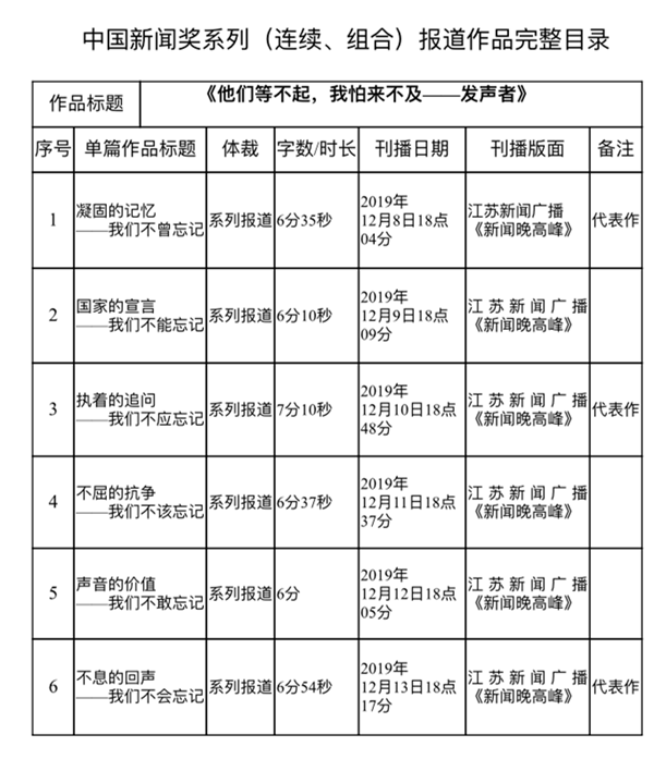 江苏新闻广播国家公祭特别策划《他们等不起,我怕来不及——发声者》,致敬为保护和传承南京大屠杀历史记忆而奔走发声的人们,致敬每一个不屈的灵魂。今天请听第六篇《不息的回声——我们不会忘记》。