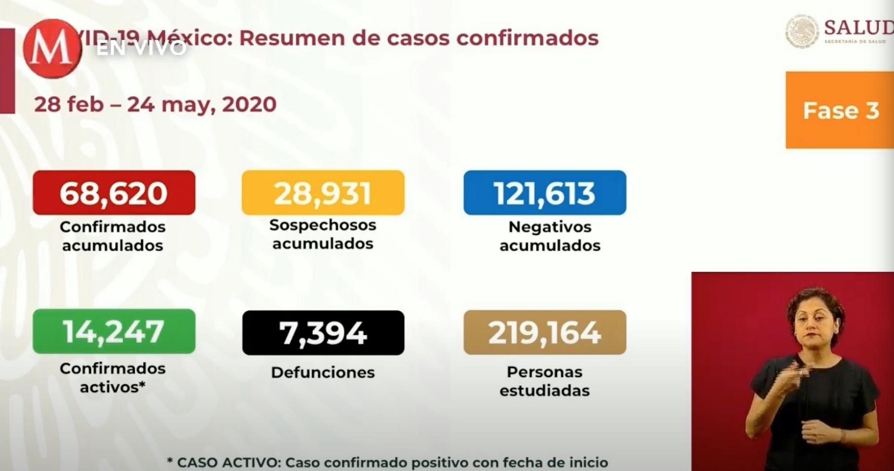 墨西哥当地时间5月24日,墨西哥卫生部宣布,截至墨西哥当地时间5月24日晚上7点,墨西哥全国确诊68620例新冠肺炎确诊病例,较前一天新增了2764例。