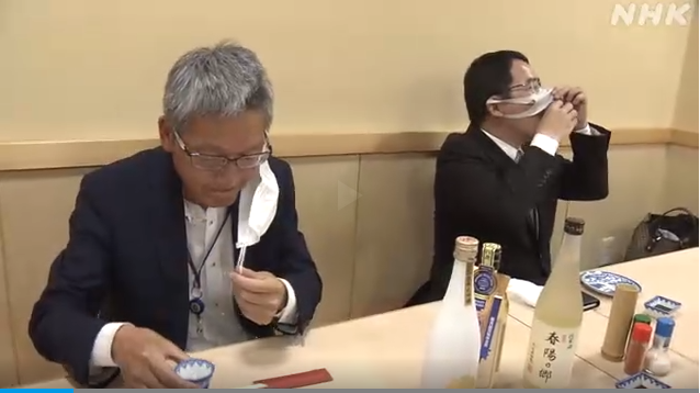 5月15日晚,约20名大分县政府职员在一家能最多容纳40人的餐馆内聚餐,为民众作出常态化抗疫的示范。他们分为几个不同的组,其中一组职员在聚餐期间一直佩戴口罩,另外一组职员则彼此之间保持距离,说话和进餐时用手帕捂住口鼻,还有一组职员佩戴透明面罩。