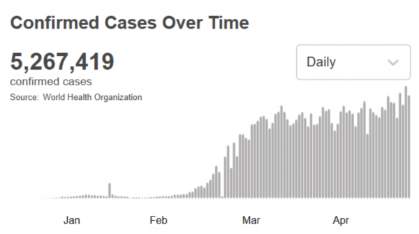 根据世卫组织最新实时统计数据,截至欧洲中部夏令时间5月25日8时30分(北京时间5月25日14时30分),全球累计确诊新冠肺炎5267419例,死亡341155例。(总台记者 朱赫)