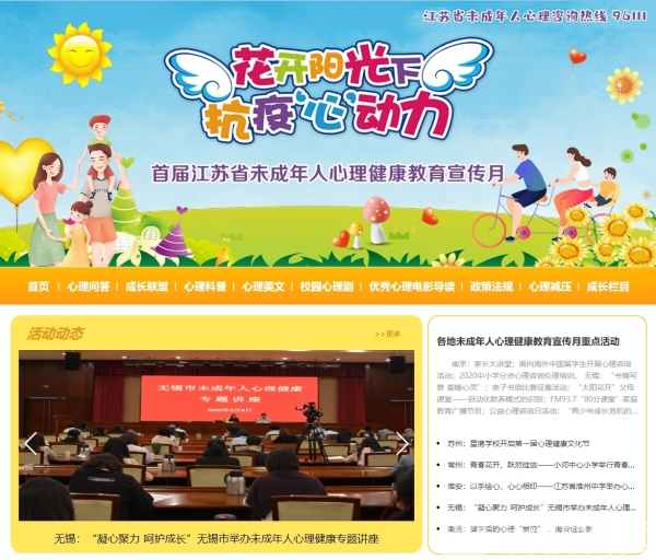 宣传月期间,主办方将整合线上线下渠道,采取传统媒体和新媒体结合方式,综合运用网络宣传、电视推介、咨询宣传、展演展示、专项调查等形式,通过一系列内容鲜活、形式新颖、感染力强的教育宣传活动,全面展示江苏未成年人心理健康教育实践成果。活动将开设专题网页,介绍各地活动动态、科普心理健康知识、推介美文涵育心灵、传播心理健康政策法规、展播心理减压视频等,并在“两微一端”新媒体联动推出。特别是由青少年心理研究领域专家和省内一线心理教师联合研发的微信自测小程序,包括学习、交往、自我、情绪情感、品德心理等5个维度,可以通过专题网页扫描二维码来试一试,进行自我评估、自我调适。