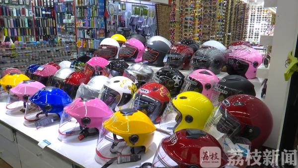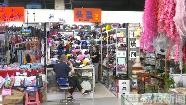 在南京市鼓楼区金桥广场,有多家商户在销售头盔,其中也包括之前并不销售头盔的商户。一家商户因为销售“三无”头盔被鼓楼区市场监管局责令改正,今天记者再次走访发现,这家商户已经不再销售头盔。商户表示,因为他家的营业执照上原本就没有经营头盔的项目,因此被市场方叫停了。