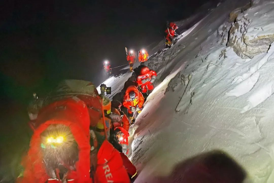 5月27日,2020珠峰高程测量登山队成功登顶珠穆朗玛峰。新华社 扎西次仁 摄