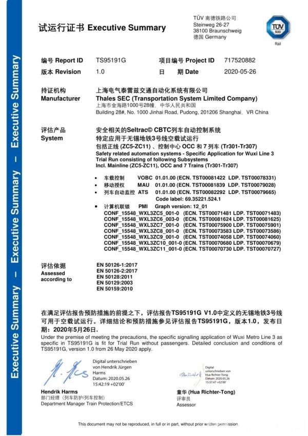 据介绍,无锡地铁3号线一期工程信号系统自2018年6月份施工以来,各有关单位密切配合,项目实施有力有序推进,如期实现了各里程碑节点。2019年,信号项目团队科学筹划、攻坚克难,完成了全线7个控区和停车场联锁调试,发布了联锁解勾锁证书,圆满完成了既定目标任务,为全线冷热滑、动车调试及停车场三权移交创造了有利条件。