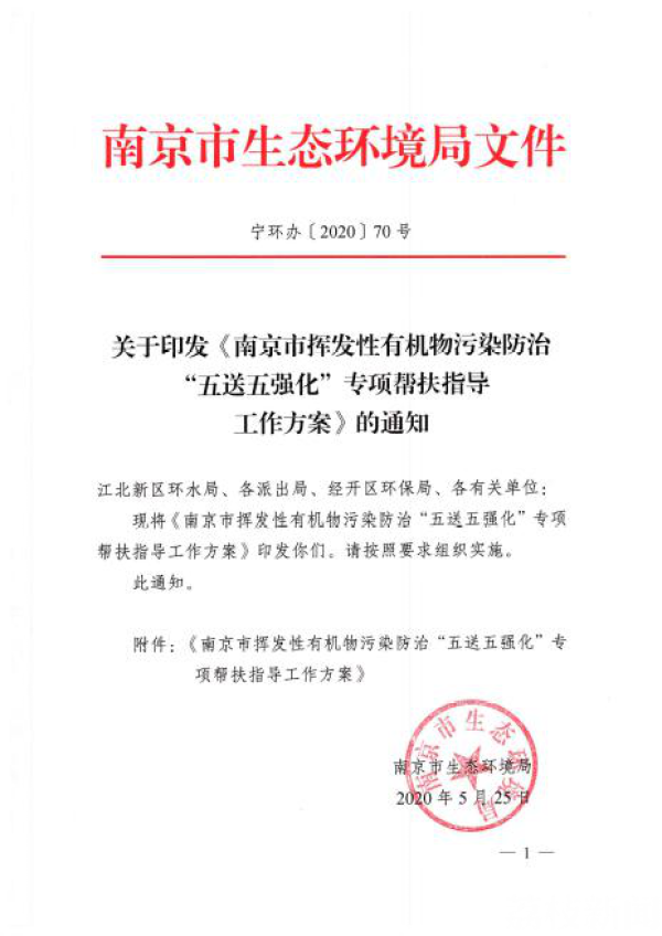 为大力推进2020年南京市重点行业VOCs综合治理工作,对标7月1日即将实施的《挥发性有机物无组织排放控制标准》等文件,近日,南京市生态环境局下发《南京市挥发性有机物污染防治“五送五强化”专项帮扶指导工作方案》,明确自5月25日起,对全市936家涉VOCs企业进行一对一帮扶,送标准、送政策、送专家、送点子、送体检,五项惠企“大礼包”直接送上门,确保企业VOCs有效减排。