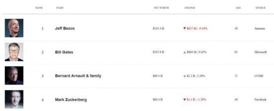 全球富豪前四名。图片来源:福布斯官网