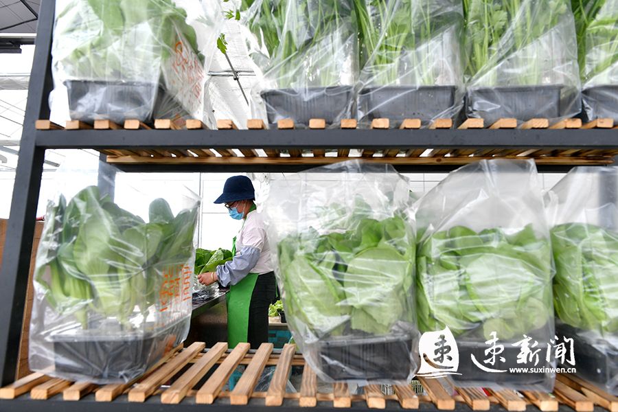 5月27日,在宿迁市湖滨新区井头乡绿立方(宿迁)蔬菜种植基地,采用无土栽培技术种植的1万平方米奶油绿生菜 、奶油红生菜 、奶白菜 、乌塔菜等15个品种的蔬菜长势喜人,工人正在批量“下架”上市销售。据悉,蔬菜从播种到上市,在营养液中生长1个月,实现无虫害、无污染、无农药残留,是真正的绿色健康蔬菜。生产出来的蔬菜采用带液活体运输,主要销往宿迁市区和徐州、连云港、淮安、日照等城市的100多家中高端超市和饭店,年销售额超过500万元。