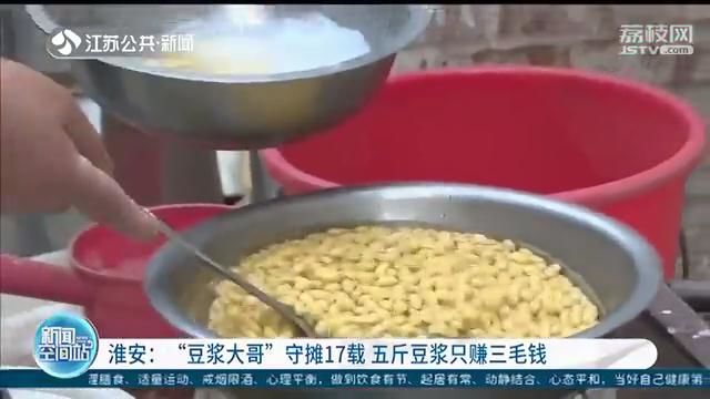在淮安市丰登路上的一条巷子口,有一个不起眼的豆浆摊,摊主是63岁的左扬国。十七年来,他坚持每份豆浆只赚三毛钱,靠着这小本生意撑起了一个家,也为街坊邻居提供了一份“舌尖上的美味”。