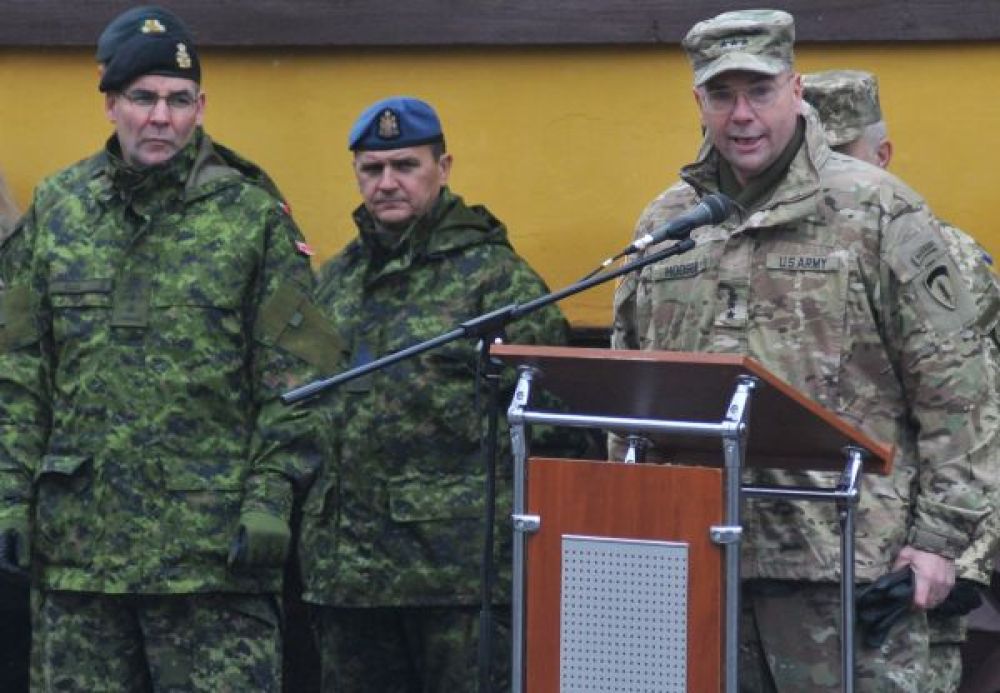 ↑资料图:乌克兰利沃夫州“格特曼·彼得·萨加伊达奇内伊”陆军科学院国际维和与安全中心举行,由美国军事教官参加的多国训练开幕式。新华社/卫星