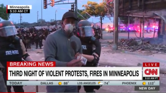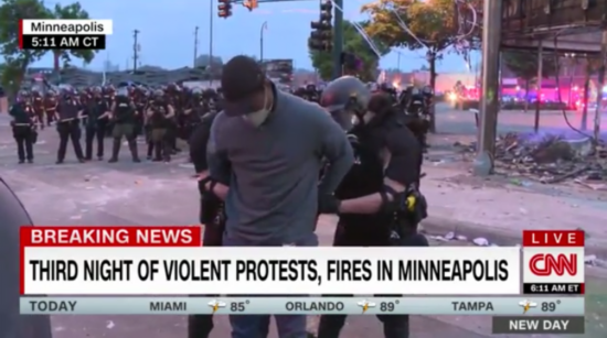 美国有线电视新闻网(CNN)刚刚消息称,当地时间凌晨5时左右,该媒体记者奥马尔·希门尼斯在美国明尼苏达州明尼阿波利斯抗议现场进行现场直播时,被警方拘捕。